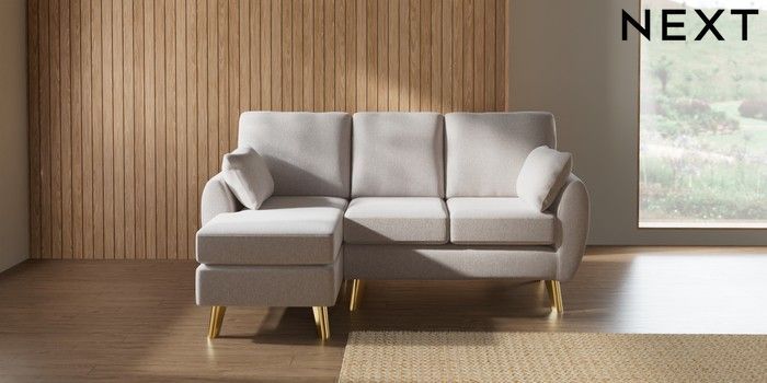 7.3.1 Buy Wilson Small Sofa Chaise - Left Hand Cotswold Chenille Oyster Metal Tapered - Gold from the Next UK online shop Click here to use our accessible website