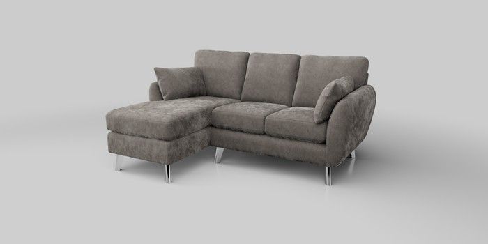 6.12.1 Buy Wilson Small Sofa Chaise - Left Hand Distressed Velour French Grey Metal Tapered - Chrome from the Next UK online shop Click here to use our accessible website