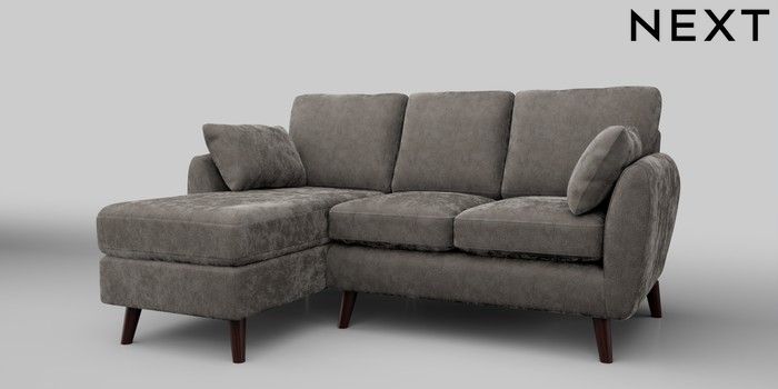 6.12.1 Buy Wilson Small Sofa Chaise - Left Hand Distressed Velour French Grey Retro Tapered - Dark Brown from the Next UK online shop Click here to use our accessible website