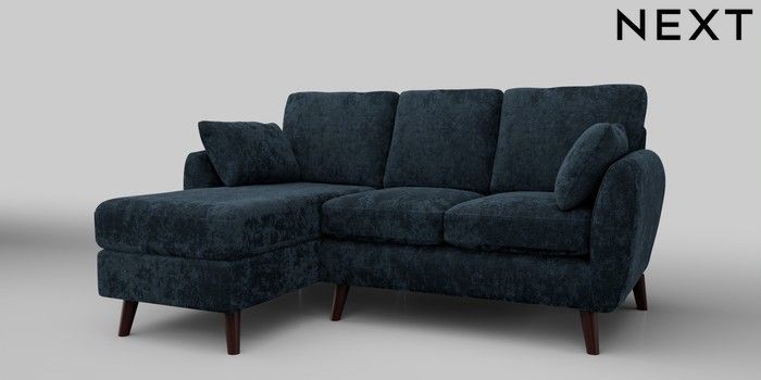 6.12.1 Buy Wilson Small Sofa Chaise - Left Hand Distressed Velour Midnight Blue Retro Tapered - Dark Brown from the Next UK online shop Click here to use our accessible website
