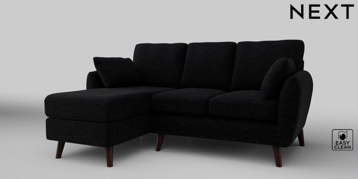6.12.1 Buy Wilson Small Sofa Chaise - Left Hand Fine Chenille Easy Clean Black Retro Tapered - Dark Brown from the Next UK online shop Click here to use our accessible website