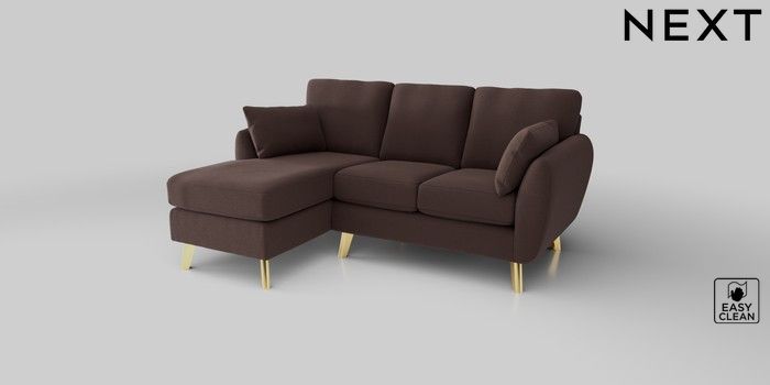 6.12.1 Buy Wilson Small Sofa Chaise - Left Hand Fine Chenille Easy Clean Chocolate Brown Metal Tapered - Gold from the Next UK online shop Click here to use our accessible website