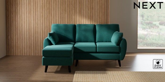 7.3.1 Buy Wilson Small Sofa Chaise - Left Hand Fine Chenille Easy Clean Dark Juniper Green Retro Tapered - Dark from the Next UK online shop