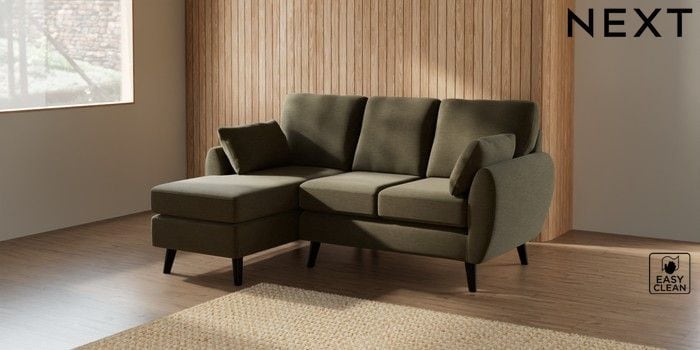 7.3.1 Buy Wilson Small Sofa Chaise - Left Hand Fine Chenille Easy Clean Dark Moss Green Retro Tapered - Dark from the Next UK online shop