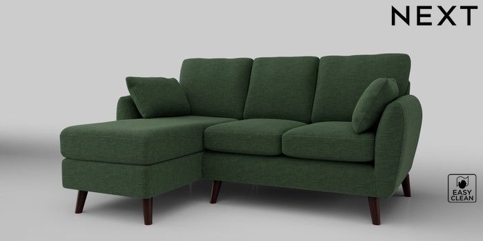 6.12.1 Buy Wilson Small Sofa Chaise - Left Hand Fine Chenille Easy Clean Mid Khaki Green Retro Tapered - Dark Brown from the Next UK online shop Click here to use our accessible website