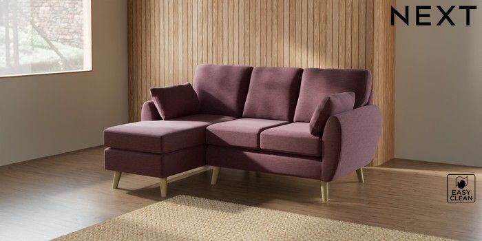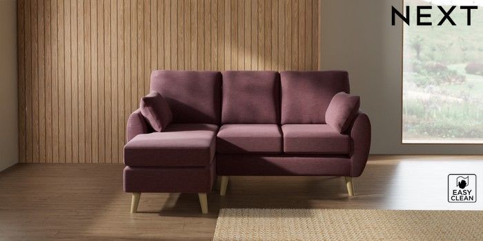 7.3.1 Buy Wilson Small Sofa Chaise - Left Hand Fine Chenille Easy Clean Mid Mulberry Purple Retro Tapered - Light from the Next UK online shop