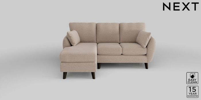 6.11.8 Buy Wilson Small Sofa Chaise - Left Hand Fine Chenille Easy Clean Mid Taupe Brown Retro Tapered - Dark from the Next UK online shop Click here to use our accessible website