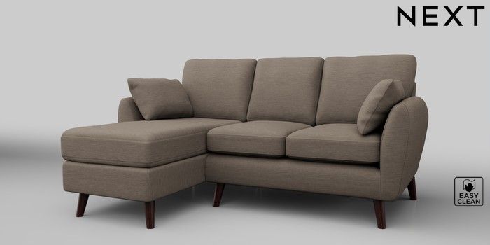 6.12.1 Buy Wilson Small Sofa Chaise - Left Hand Fine Chenille Easy Clean Mid Taupe Brown Retro Tapered - Dark Brown from the Next UK online shop Click here to use our accessible website