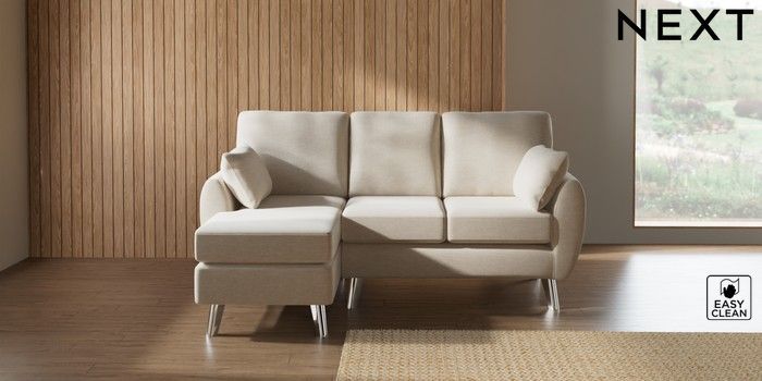 7.3.1 Buy Wilson Small Sofa Chaise - Left Hand Fine Chenille Easy Clean Oyster Metal Tapered - Chrome from the Next UK online shop