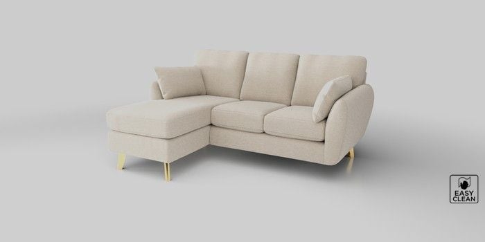 6.12.1 Buy Wilson Small Sofa Chaise - Left Hand Fine Chenille Easy Clean Oyster Metal Tapered - Gold from the Next UK online shop Click here to use our accessible website