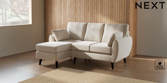 7.2.10 Buy Wilson Small Sofa Chaise - Left Hand Fine Chenille Easy Clean Oyster Retro Tapered - Dark from the Next UK online shop Click here to use our accessible website