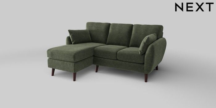 6.12.1 Buy Wilson Small Sofa Chaise - Left Hand Luxe Chenille Mid Green Retro Tapered - Dark Brown from the Next UK online shop Click here to use our accessible website