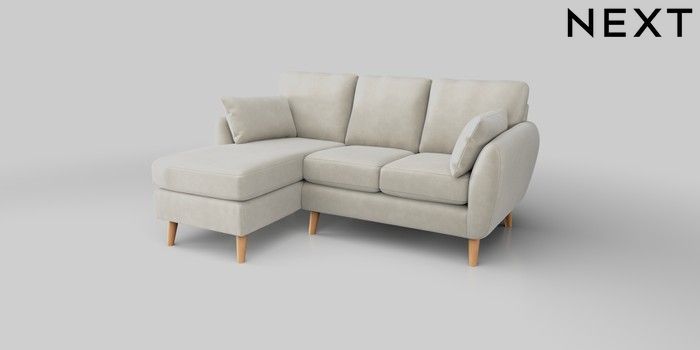 7.0.3 Buy Wilson Small Sofa Chaise - Left Hand Luxe Chenille Oyster Retro Tapered - Light from the Next UK online shop Click here to use our accessible website