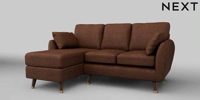 6.12.1 Buy Wilson Small Sofa Chaise - Left Hand Monza Faux Leather Easy Clean Chestnut Brown Low Retro Tapered Metal Cap - Mid from the Next UK online shop Click here to use our accessible website