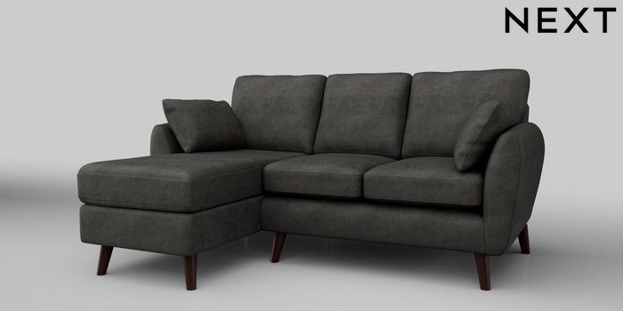 6.12.1 Buy Wilson Small Sofa Chaise - Left Hand Monza Faux Leather Easy Clean Dark Grey Retro Tapered - Dark Brown from the Next UK online shop Click here to use our accessible website