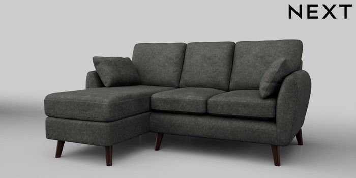 6.12.1 Buy Wilson Small Sofa Chaise - Left Hand Plush Chenille Dark Grey Retro Tapered - Dark Brown from the Next UK online shop Click here to use our accessible website