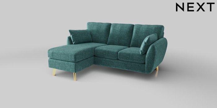 6.12.1 Buy Wilson Small Sofa Chaise - Left Hand Plush Chenille Dark Teal Green Metal Tapered - Gold from the Next UK online shop Click here to use our accessible website