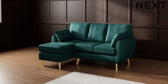 7.3.1 Buy Wilson Small Sofa Chaise - Left Hand Plush Chenille Dark Teal Green Metal Tapered - Gold from the Next UK online shop