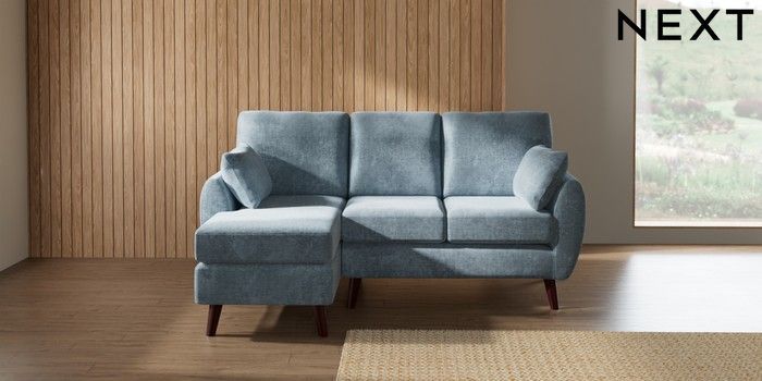 7.3.1 Buy Wilson Small Sofa Chaise - Left Hand Plush Chenille Light Blue Retro Tapered - Dark Brown from the Next UK online shop