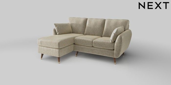 6.12.1 Buy Wilson Small Sofa Chaise - Left Hand Plush Chenille Light Natural Low Retro Tapered Metal Cap - Mid from the Next UK online shop Click here to use our accessible website