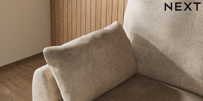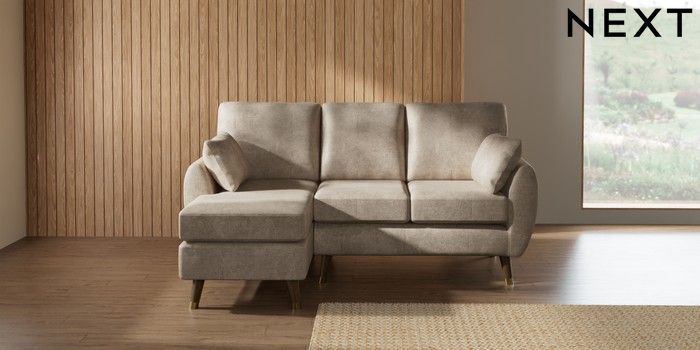 7.3.1 Buy Wilson Small Sofa Chaise - Left Hand Plush Chenille Light Natural Low Retro Tapered Metal Cap - Mid from the Next UK online shop