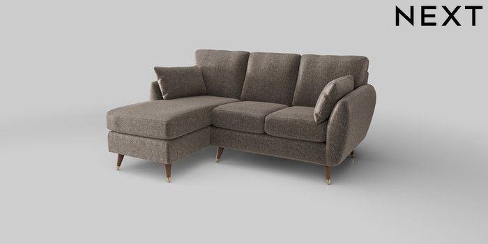 6.12.1 Buy Wilson Small Sofa Chaise - Left Hand Plush Chenille Mink Brown Low Retro Tapered Metal Cap - Mid from the Next UK online shop Click here to use our accessible website
