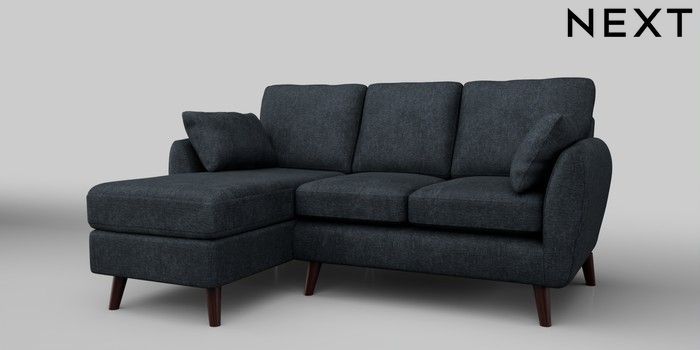 6.12.1 Buy Wilson Small Sofa Chaise - Left Hand Plush Chenille Slate Blue Retro Tapered - Dark Brown from the Next UK online shop Click here to use our accessible website