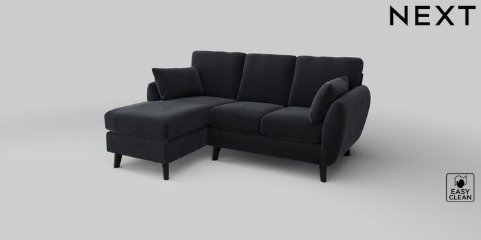 6.12.1 Buy Wilson Small Sofa Chaise - Left Hand Plush Velvet Easy Clean Charcoal Grey Retro Tapered - Dark from the Next UK online shop Click here to use our accessible website