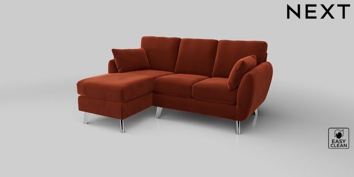 6.12.1 Buy Wilson Small Sofa Chaise - Left Hand Plush Velvet Easy Clean Ginger Orange Metal Tapered - Chrome from the Next UK online shop Click here to use our accessible website