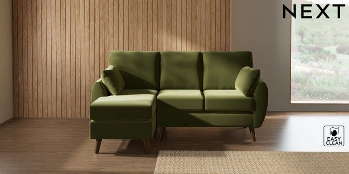7.3.1 Buy Wilson Small Sofa Chaise - Left Hand Plush Velvet Easy Clean Mid Olive Green Retro Tapered - Mid from the Next UK online shop
