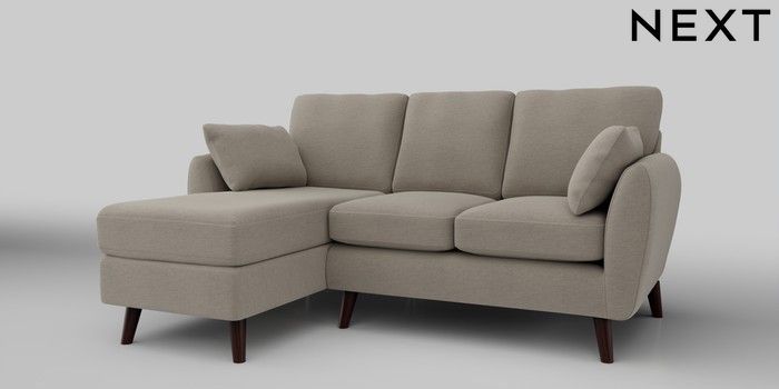6.12.1 Buy Wilson Small Sofa Chaise - Left Hand Ripple Chenille Light Natural Retro Tapered - Dark Brown from the Next UK online shop Click here to use our accessible website