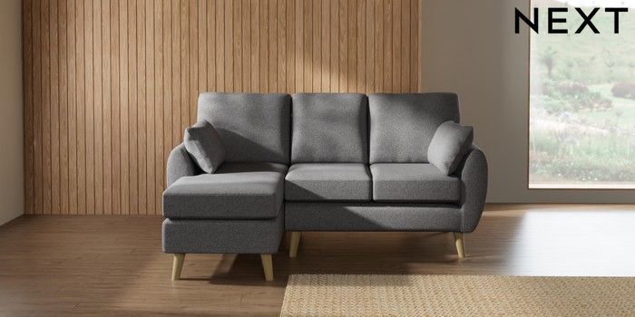 7.3.1 Buy Wilson Small Sofa Chaise - Left Hand Studio Chenille Mid Grey Retro Tapered - Light from the Next UK online shop Click here to use our accessible website