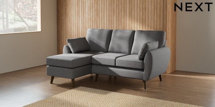 7.2.10 Buy Wilson Small Sofa Chaise - Left Hand Studio Chenille Mid Grey Retro Tapered - Mid from the Next UK online shop Click here to use our accessible website