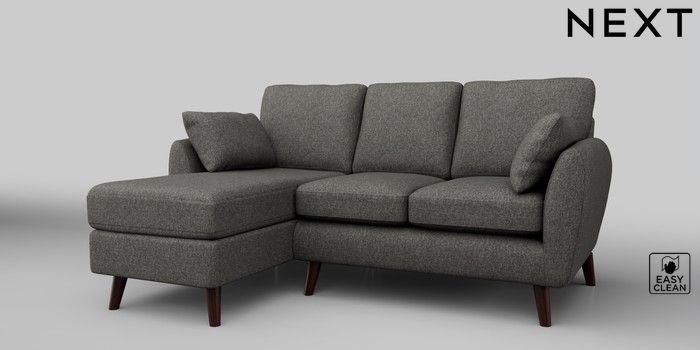 6.12.1 Buy Wilson Small Sofa Chaise - Left Hand Tweedy Blend Easy Clean Dark Grey Retro Tapered - Dark Brown from the Next UK online shop Click here to use our accessible website