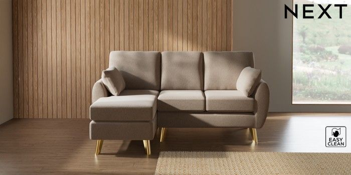 7.3.1 Buy Wilson Small Sofa Chaise - Left Hand Tweedy Blend Easy Clean Light Dove Natural Metal Tapered - Gold from the Next UK online shop Click here to use our accessible website