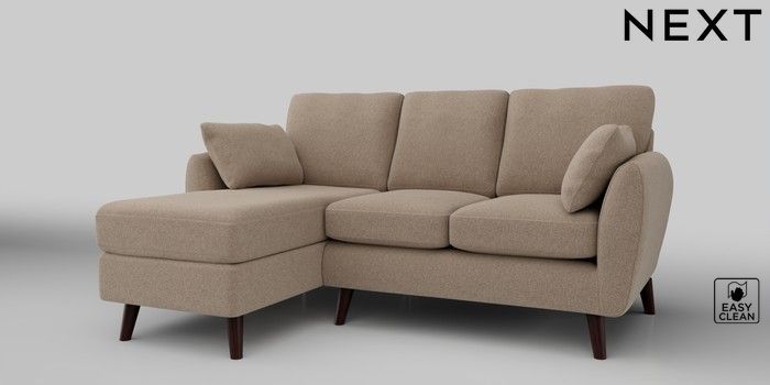 6.12.1 Buy Wilson Small Sofa Chaise - Left Hand Tweedy Blend Easy Clean Light Dove Natural Retro Tapered - Dark Brown from the Next UK online shop Click here to use our accessible website