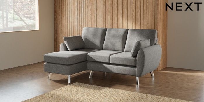7.3.1 Buy Wilson Small Sofa Chaise - Left Hand Tweedy Chenille Mid Grey Metal Tapered - Chrome from the Next UK online shop