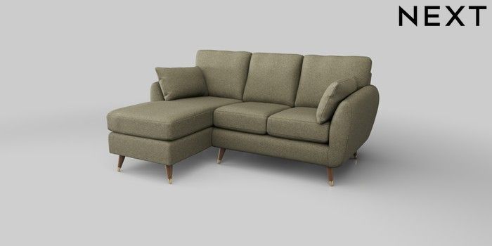 6.12.1 Buy Wilson Small Sofa Chaise - Left Hand Tweedy Chenille Mid Moss Green Low Retro Tapered Metal Cap - Mid from the Next UK online shop Click here to use our accessible website