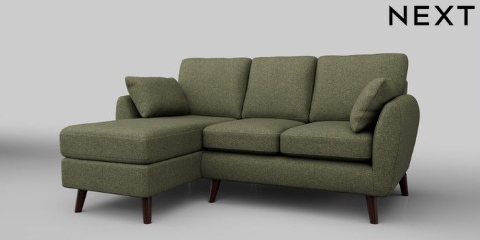 6.12.1 Buy Wilson Small Sofa Chaise - Left Hand Tweedy Chenille Mid Moss Green Retro Tapered - Dark Brown from the Next UK online shop Click here to use our accessible website