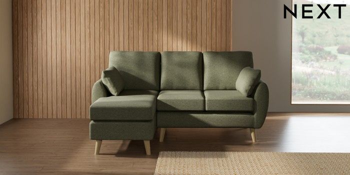 7.3.1 Buy Wilson Small Sofa Chaise - Left Hand Tweedy Chenille Mid Moss Green Retro Tapered - Light from the Next UK online shop