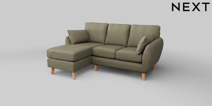 6.12.1 Buy Wilson Small Sofa Chaise - Left Hand Tweedy Chenille Mid Moss Green Retro Tapered - Light from the Next UK online shop Click here to use our accessible website