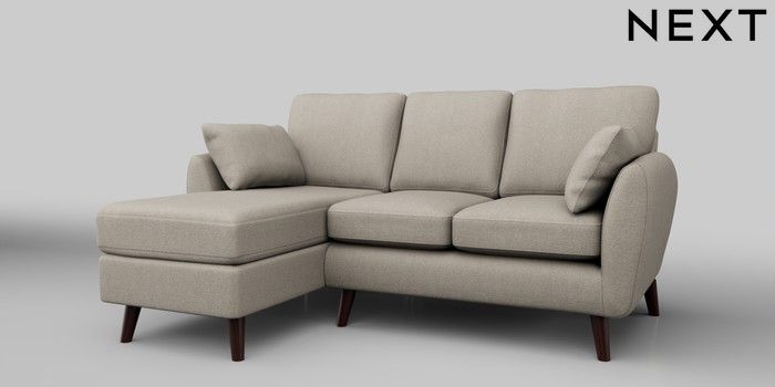 6.12.1 Buy Wilson Small Sofa Chaise - Left Hand Tweedy Chenille Oyster Retro Tapered - Dark Brown from the Next UK online shop Click here to use our accessible website