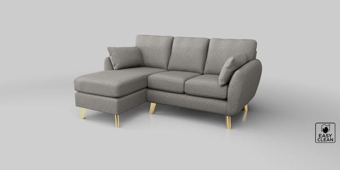 6.12.1 Buy Wilson Small Sofa Chaise - Left Hand Woven Chenille Easy Clean Light Grey Metal Tapered - Gold from the Next UK online shop Click here to use our accessible website