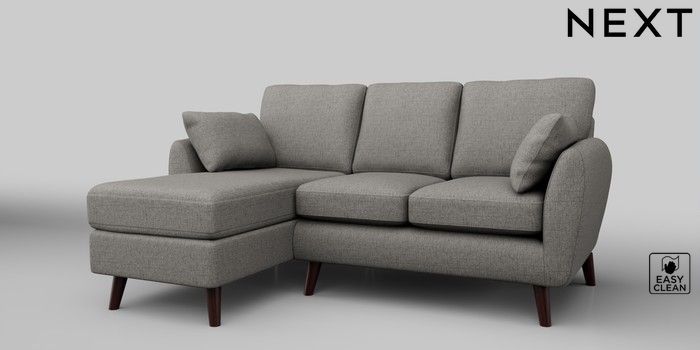 6.12.1 Buy Wilson Small Sofa Chaise - Left Hand Woven Chenille Easy Clean Light Grey Retro Tapered - Dark Brown from the Next UK online shop Click here to use our accessible website