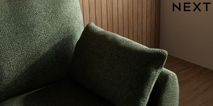 7.3.1 Buy Wilson Small Sofa Chaise - Right Hand Boucle Chenille Dark Moss Green Low Retro Tapered Metal Cap - Mid from the Next UK online shop