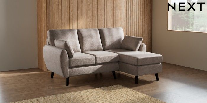 7.3.1 Buy Wilson Small Sofa Chaise - Right Hand Boucle Chenille Light Natural Retro Tapered - Dark from the Next UK online shop