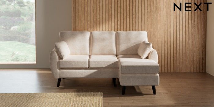 7.3.1 Buy Wilson Small Sofa Chaise - Right Hand Boucle Chenille Oyster Retro Tapered - Dark from the Next UK online shop