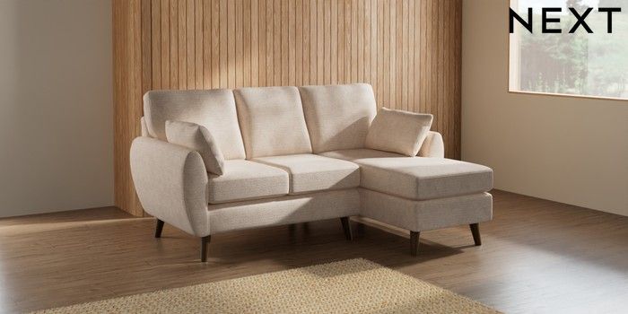 7.3.1 Buy Wilson Small Sofa Chaise - Right Hand Boucle Chenille Oyster Retro Tapered - Mid from the Next UK online shop