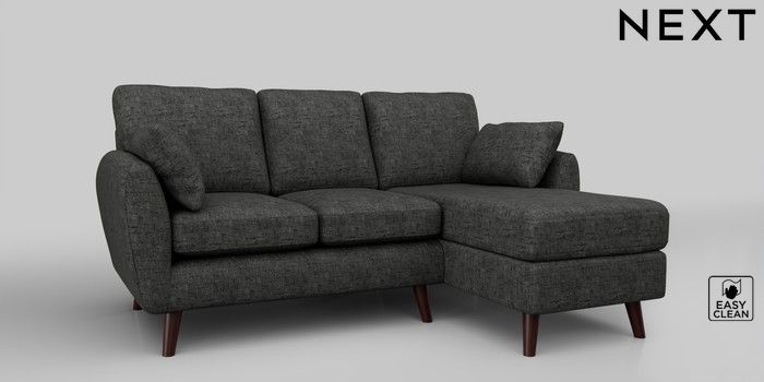 6.12.1 Buy Wilson Small Sofa Chaise - Right Hand Boucle Weave Easy Clean Charcoal Grey Retro Tapered - Dark Brown from the Next UK online shop Click here to use our accessible website