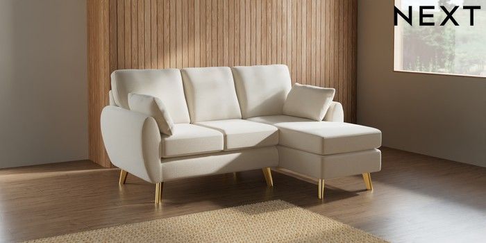 7.2.10 Buy Wilson Small Sofa Chaise - Right Hand Ripple Chenille Oyster Metal Tapered - Gold from the Next UK online shop Click here to use our accessible website